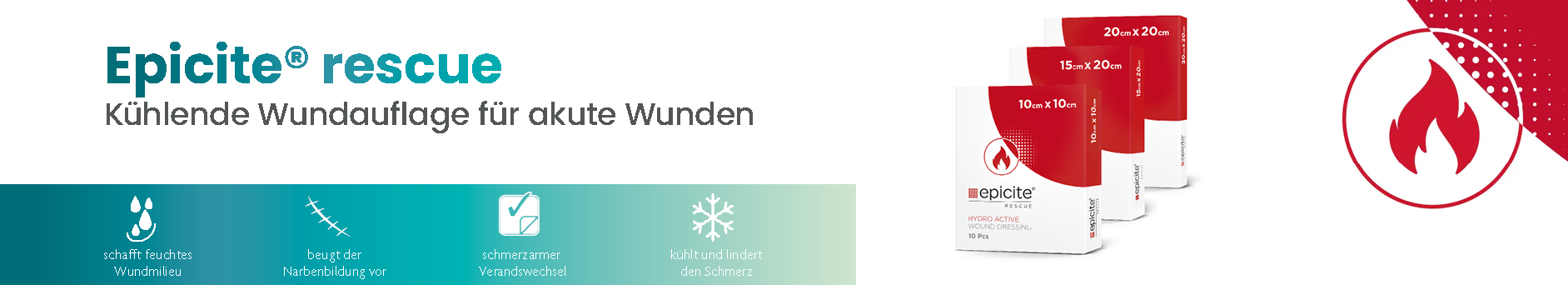 Die kühlende, hydro-aktive Wundauflage für Verbrennungen sowie für akute Wunden.
